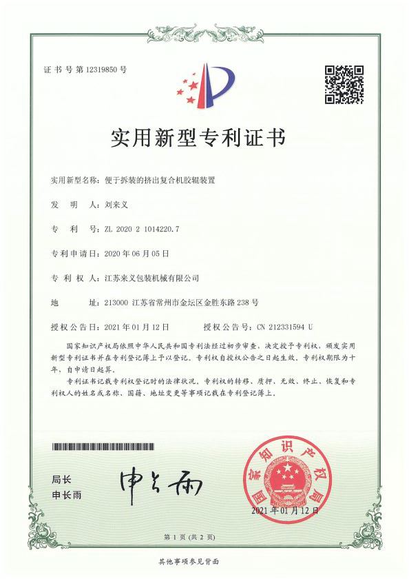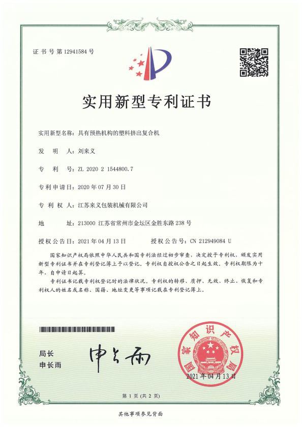 江蘇來義包裝機械有限公司成立于2007年,位于長三角經(jīng)濟帶常州市金壇區(qū),主要從事擠出復(fù)合生產(chǎn)線的研發(fā)、生產(chǎn)與銷售。依托全方位的技術(shù)開發(fā)、試驗、交流、咨詢、服務(wù),致力于多領(lǐng)域的科技推廣和應(yīng)用。多年來,公司始終秉承“義”的價值觀,堅守“專注研發(fā)、質(zhì)量第一、客戶至上”的經(jīng)營理念,孜孜以求,持續(xù)深耕,擁有各項專利達(dá)60余項,先后榮獲“江蘇省高新技術(shù)企業(yè)”、“江蘇省民營科技企業(yè)”、“中國人民銀行AAA信用評級”等榮譽稱號,成為行業(yè)佼佼者。